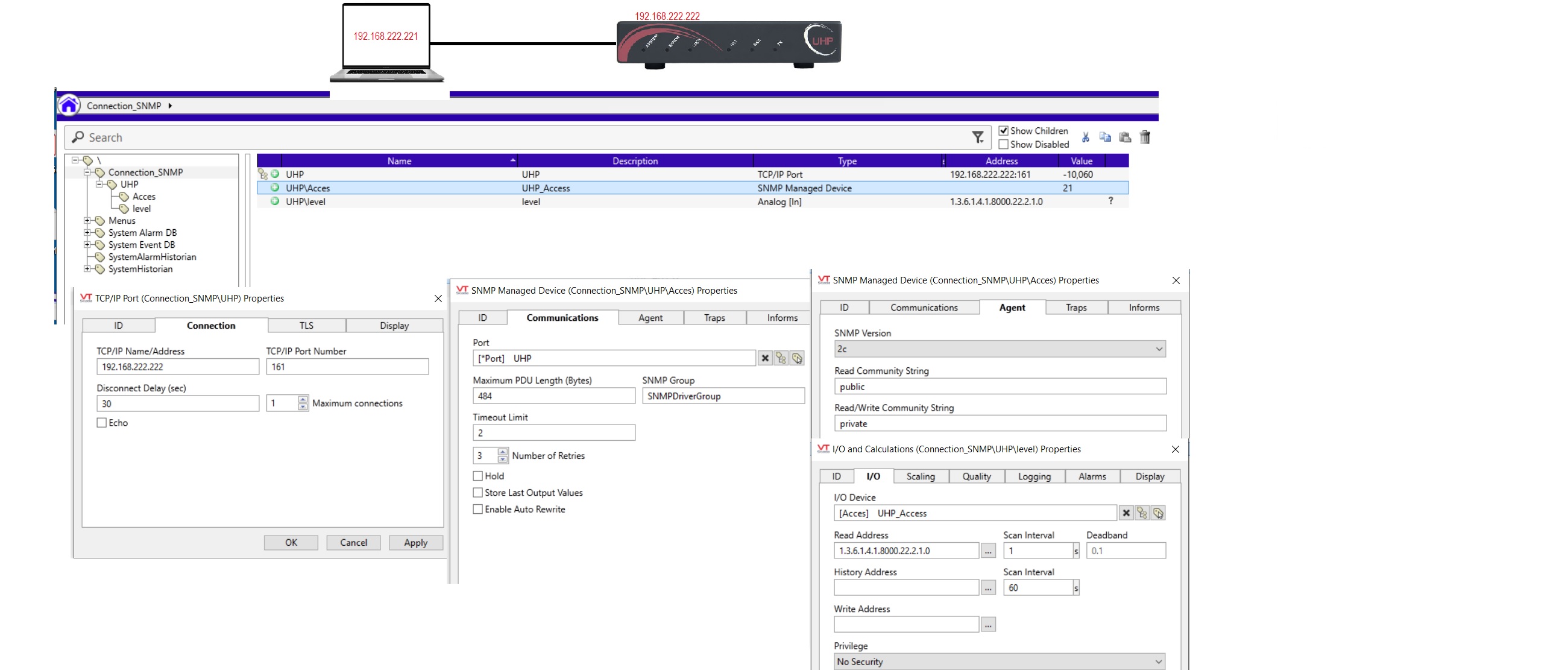 I configured a simple link to communicate with an equipment in SNMP as in the attached photo, but the VTScada does not communicate with the equipment. The computer communicates without problem either by the web page or by the ping . could you please check the picture attache.