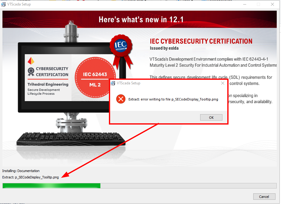 Error installing VTScada LIGHT 12.1.42
