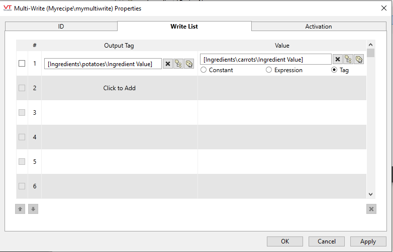 I have tried to multi-write tag... it allows a constant to be written to a string output tag but not another string tag value to be written to a output tag...
