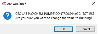 This is the long way to implement a "Confirm" feature. I'm searching for a way to close the Confirm pop-up when the operator clicks "Yes" besides setting the corresponding tag. Anyway, I'm looking forward for the VTScada check-off box version that would make this feature simple to use like other systems I've worked on.