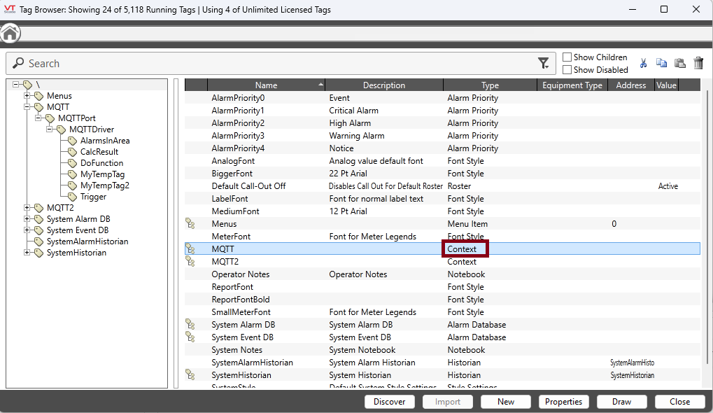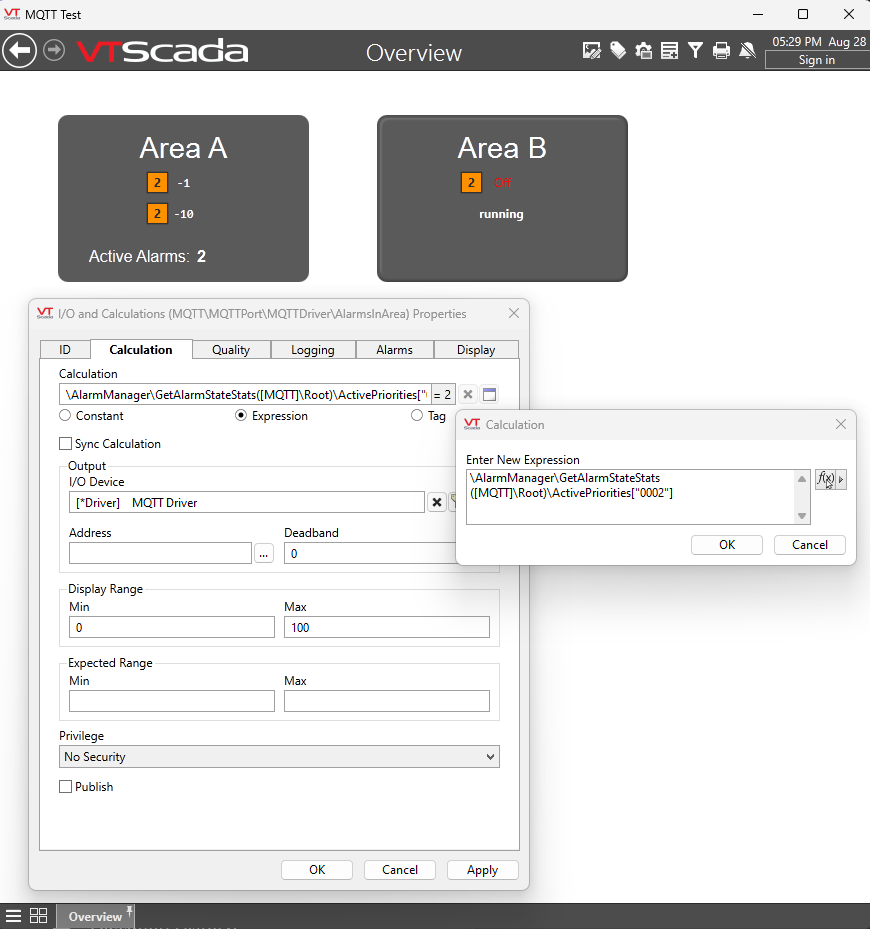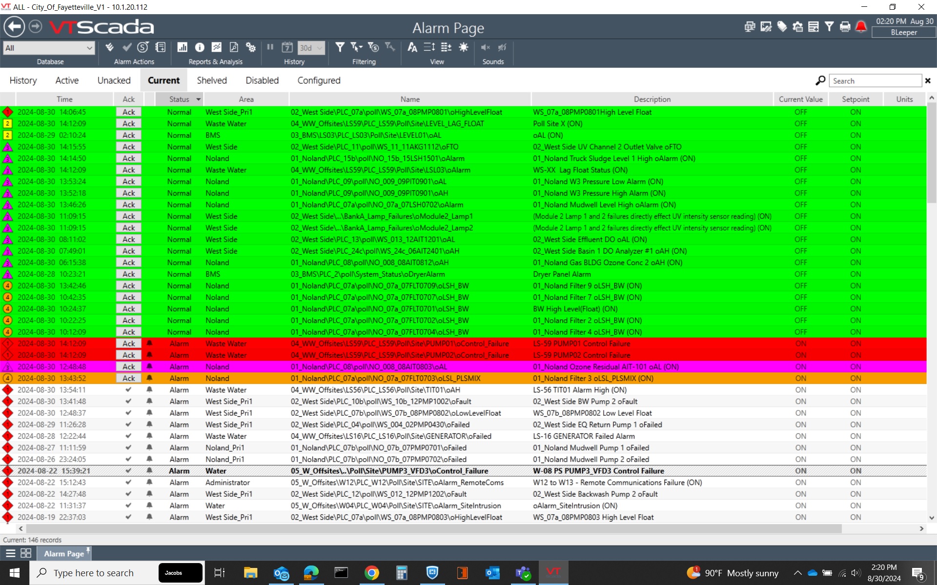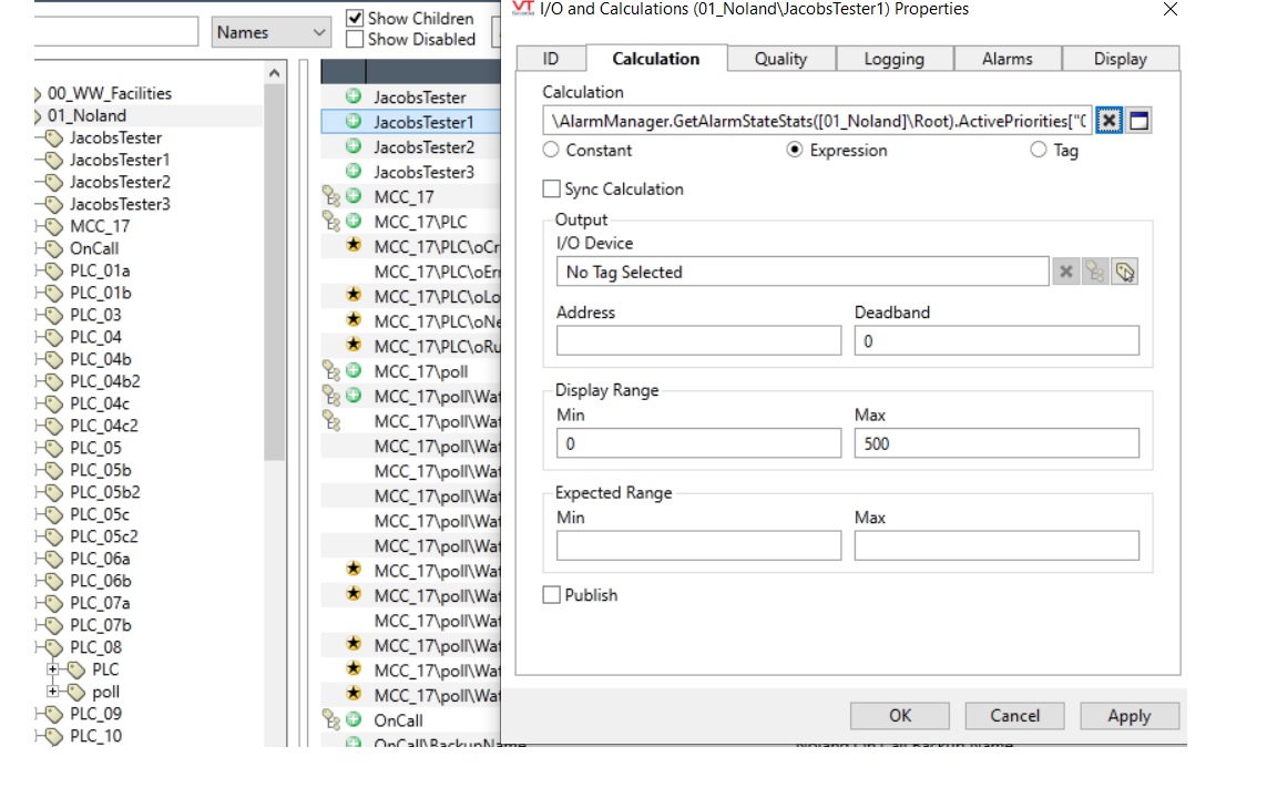 I am going behind someone on an unfinished attempt to display alarm counts by area. Below is an alarm query tag calculation path for the influent pump station area: