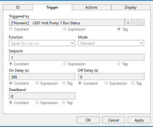 Hi - I need to set up an alarm for when a pump runs over a certain amount of time per cycle - could anyone point me to an example of how to do this? Thanks!