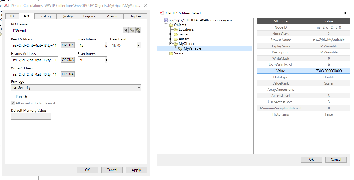 I've connected to a local OPC UA, can browse the nodes and have imported a tag. In the tag properties, if I select the tag helper OPCUA button, it shows the current value of the variable.