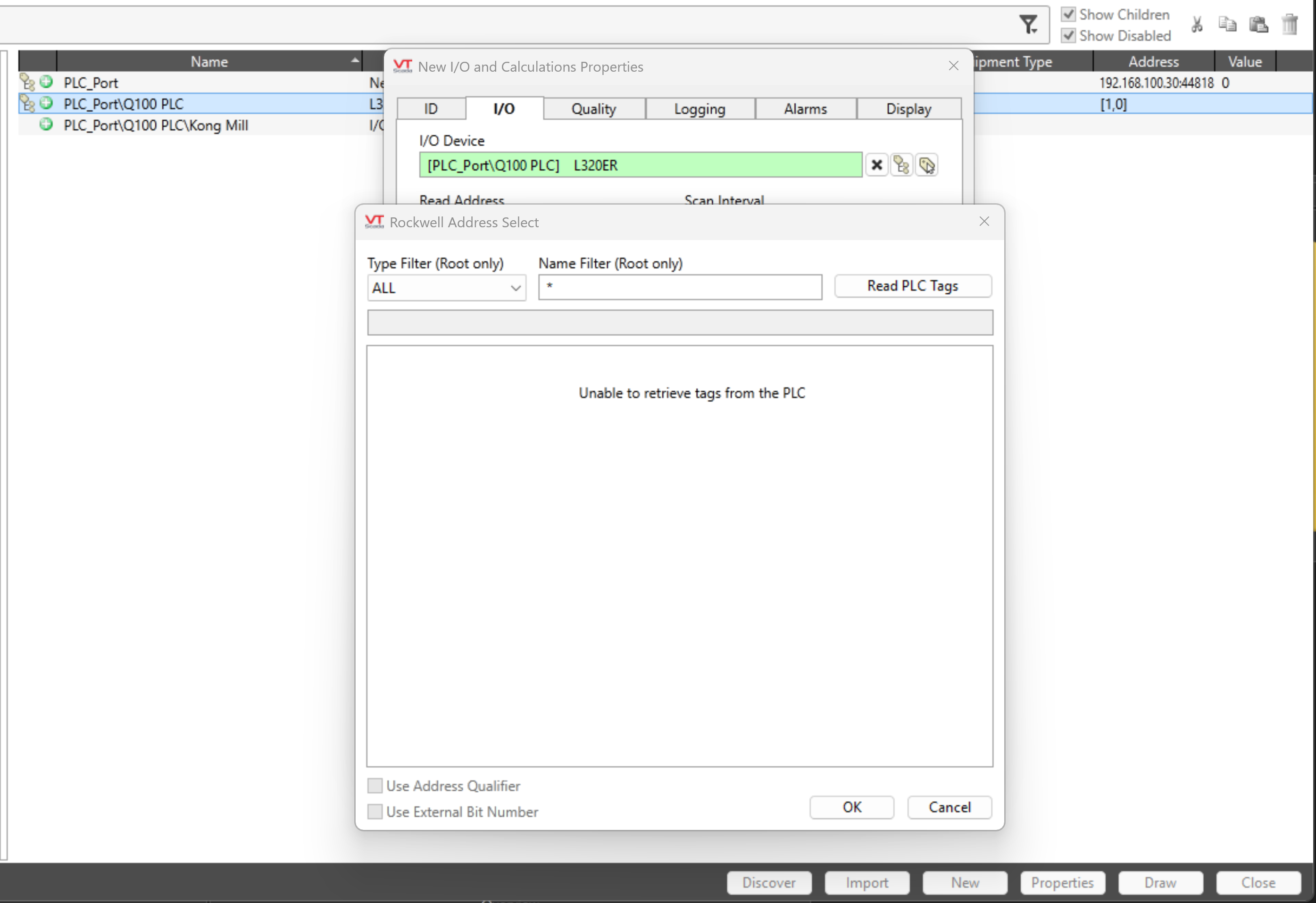 Also, when I try to set up tags individually, the application is unable to read from the PLC to choose the appropriate I/O.