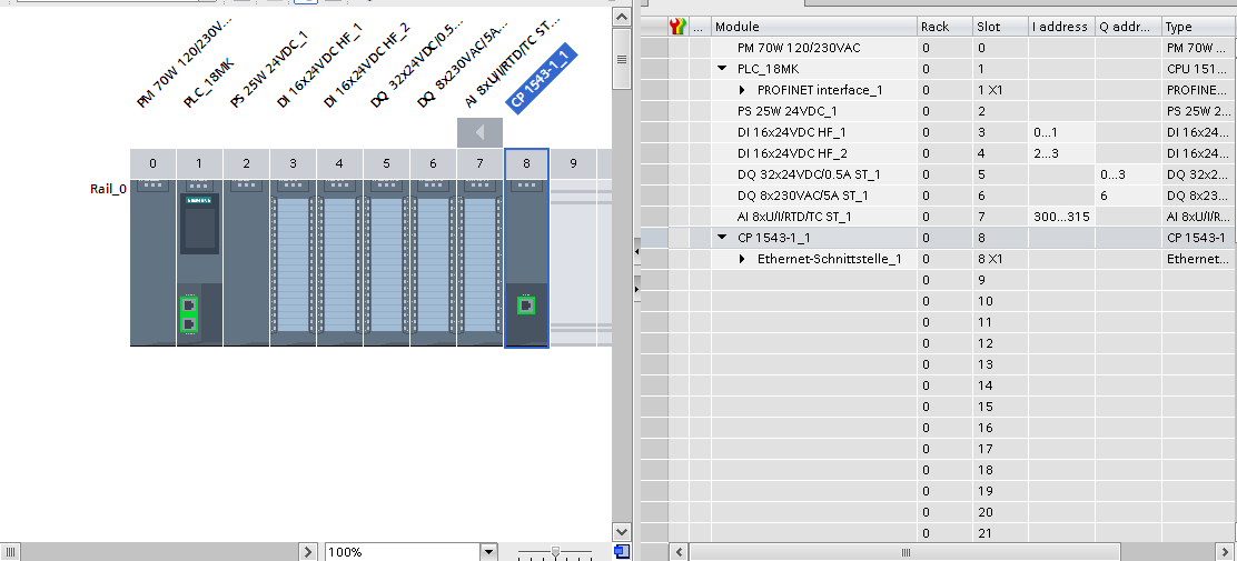 Siemens S7-1500 series PLC with CP 1543-1