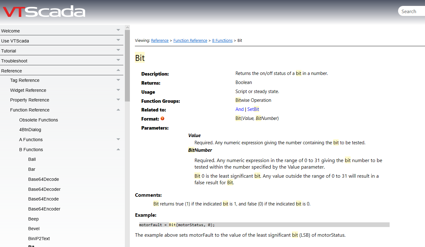 Hi community. I am trying to use a calculation tag to determine the bit status of an analog value. I cannot seem to get the syntax correct to put in the expression. I found the code snippet below but I think that may be for scripting not expressions...not sure Is there any documentation on functions and syntax for these expressions? trying [value] && 4 does not work to find the status of the 3rd bit. I cant seem to find any using F1 help. Thank you