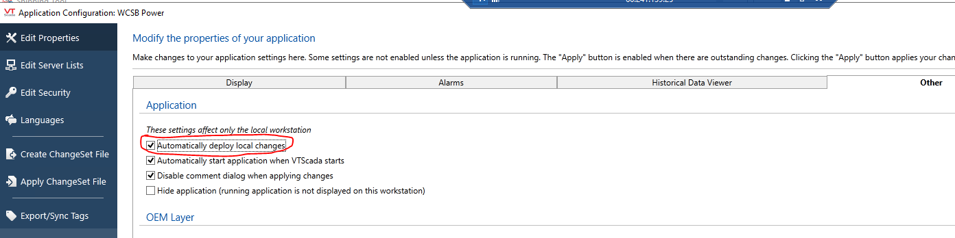 How can I make disable Automatic Deploy Changes in VTScada.