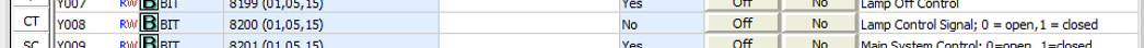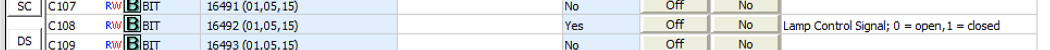 Then, I changed the Y memory to C memory bit, the device is still working well. However, after I change the Modbus address to the specific C memory bit, VTScada can no longer read the digital status of the device. There is no number appear on the value column. I attached a picture of my PLC Modbus address and function code for C memory bit below: