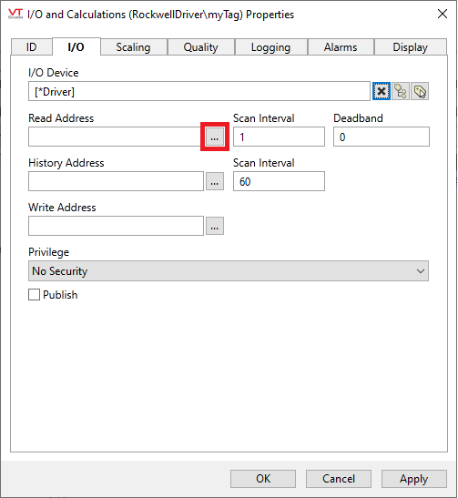 After doing that, based on the help there something should be added to my tag properties screen which will allow me to launch the "CIP Address Select Tool". There isn't, or if there is I'm not seeing it.