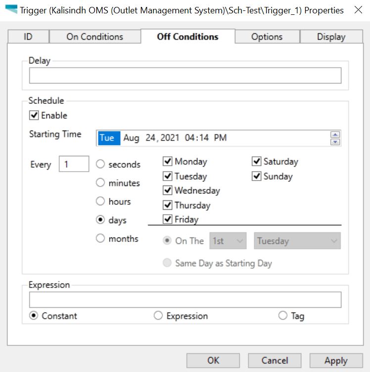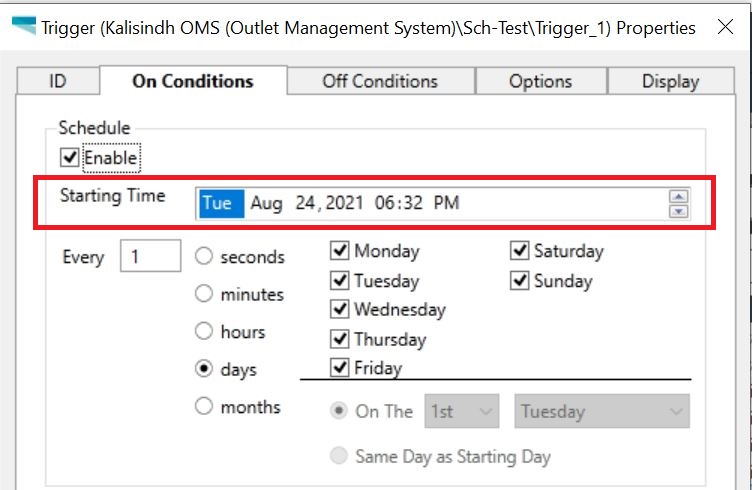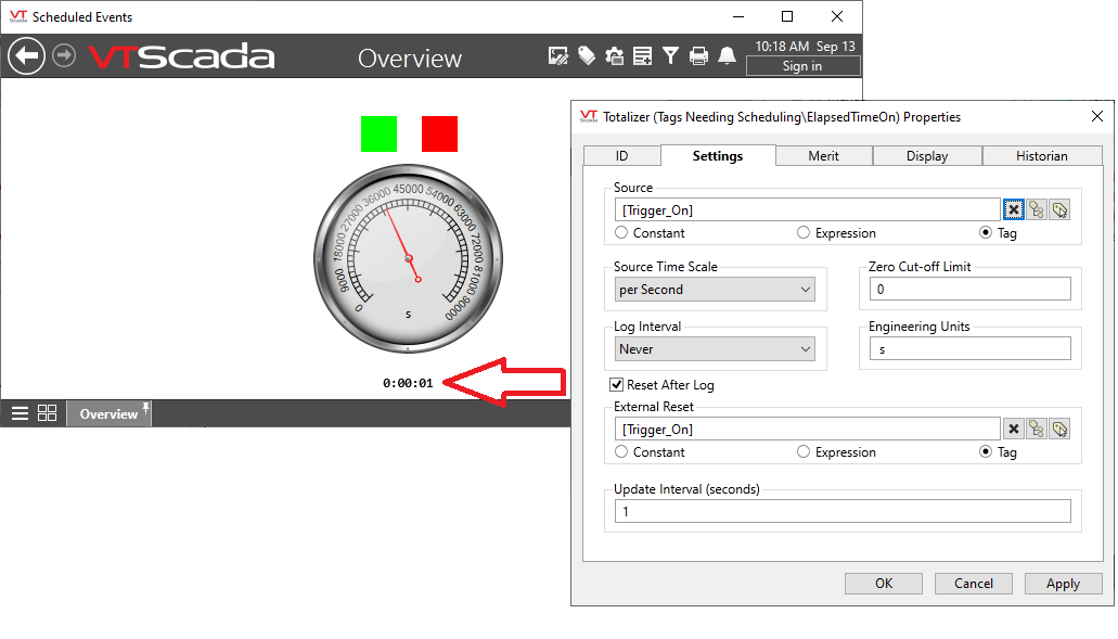 I tried to make this with the Trigger tag available in VTScada. I have set On-time & Off-time of the scheduler. Scheduler starting at its set time interval. But how can I enable my tag for SOV at the same time?