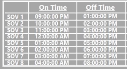 I need to set the scheduling for the SOV's (solenoid operating valve) at a certain time interval.