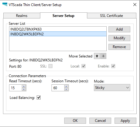 Need to configure Automatic seamless server failover at Client side. We have configured two servers in "VTScada Thin Client/Server Setup" under Server Setup option. We have one Public IP under which we need to configure our two redundant servers.