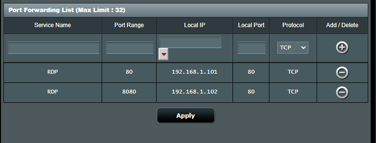 We have created two port forwarding rules at Network router for these two servers.