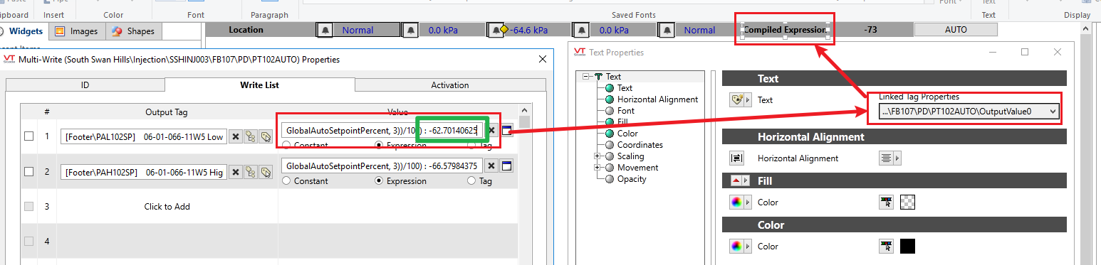 I have an odd problem currently where I am trying to link a text to the output value of a multi-write tag. In the text properties I am setting it to 'linked tag properties' and then finding the appropriate tag and then selecting "OutputValue1" (I am assuming this would be the result of the value field in the 1st row of the output tags.)