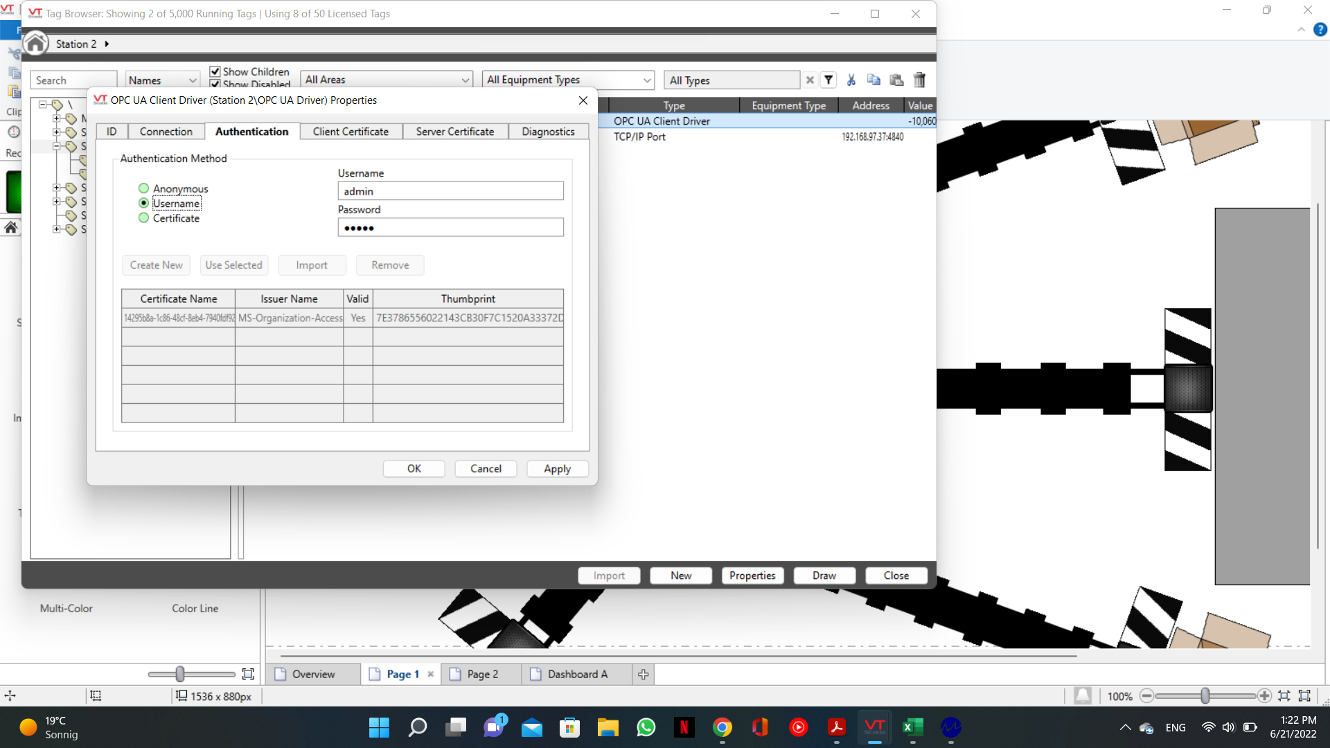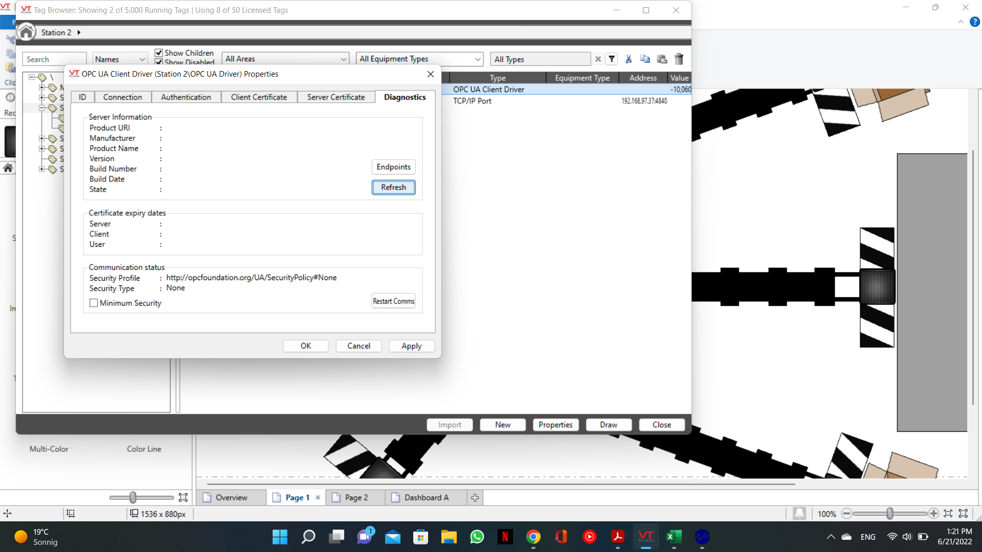 Drawing the Comms Stats widget for the OPC UA Client Driver gives some error info.