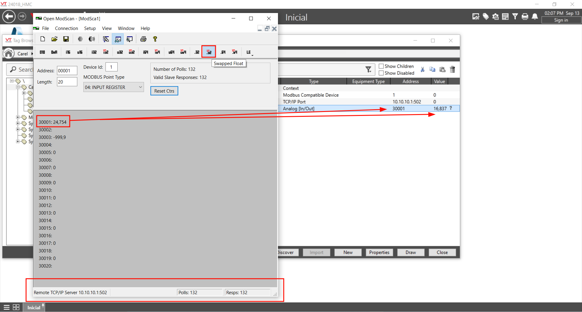 How do I read this address from VTScada? I've tried all the Data Suffixes for Tag I/O Addressing but it didn't work. Below is the address "30001" in ModScan and its temperature reading. I've tried "30001/Float" but it didn't work.